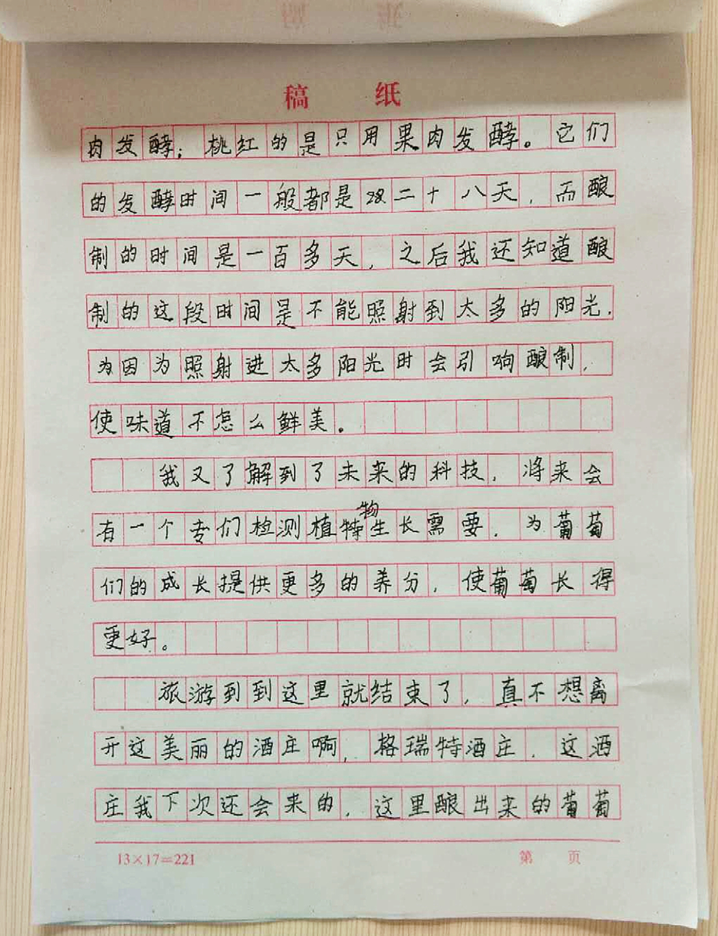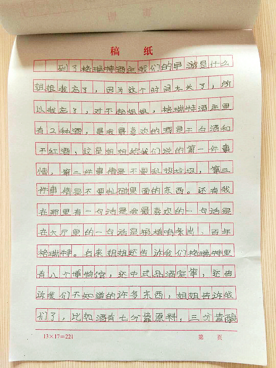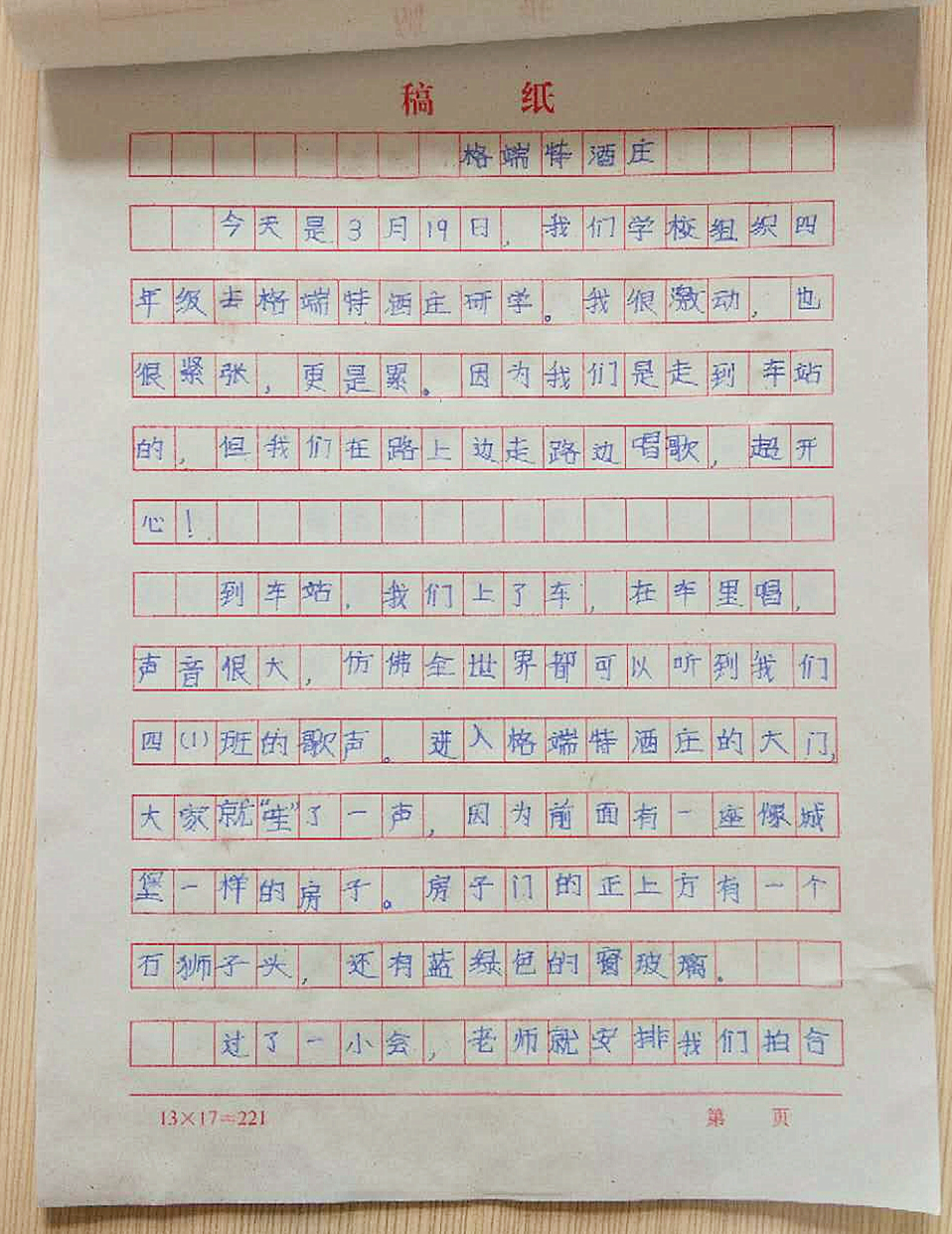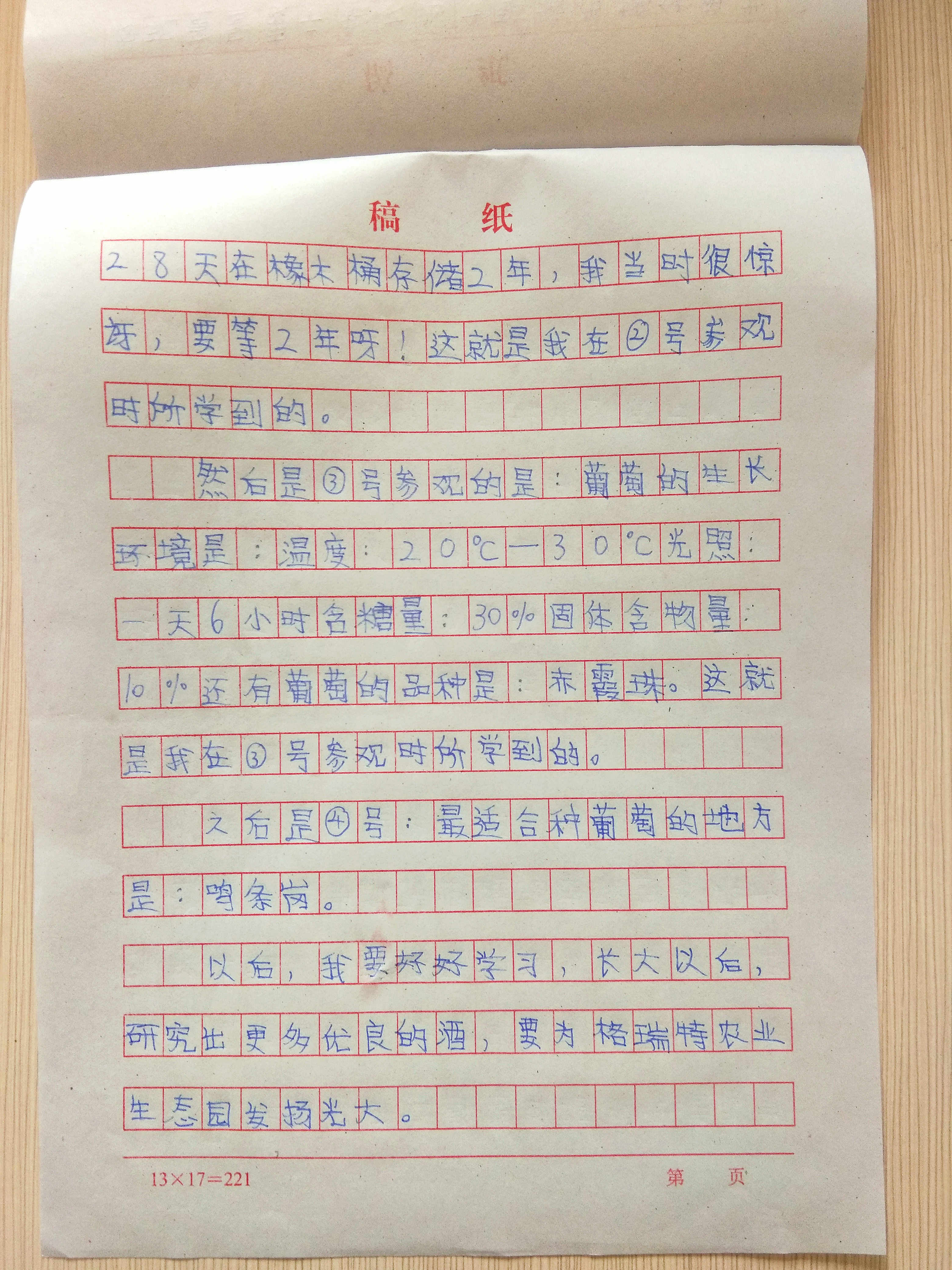 怎么樣!可愛的同學(xué)們在參觀格瑞特酒莊之后,寫下了一篇篇觀后感。這稚嫩的字體,用心的言語,表達(dá)了他們對格瑞特酒莊 的滿意與祝福。展信如晤,見字如面,一紙信箋,如此之遠(yuǎn),又如此之近。