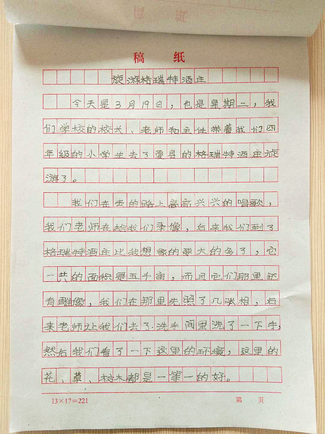 怎么樣!可愛的同學(xué)們在參觀格瑞特酒莊之后,寫下了一篇篇觀后感。這稚嫩的字體,用心的言語,表達(dá)了他們對格瑞特酒莊 的滿意與祝福。展信如晤,見字如面,一紙信箋,如此之遠(yuǎn),又如此之近。