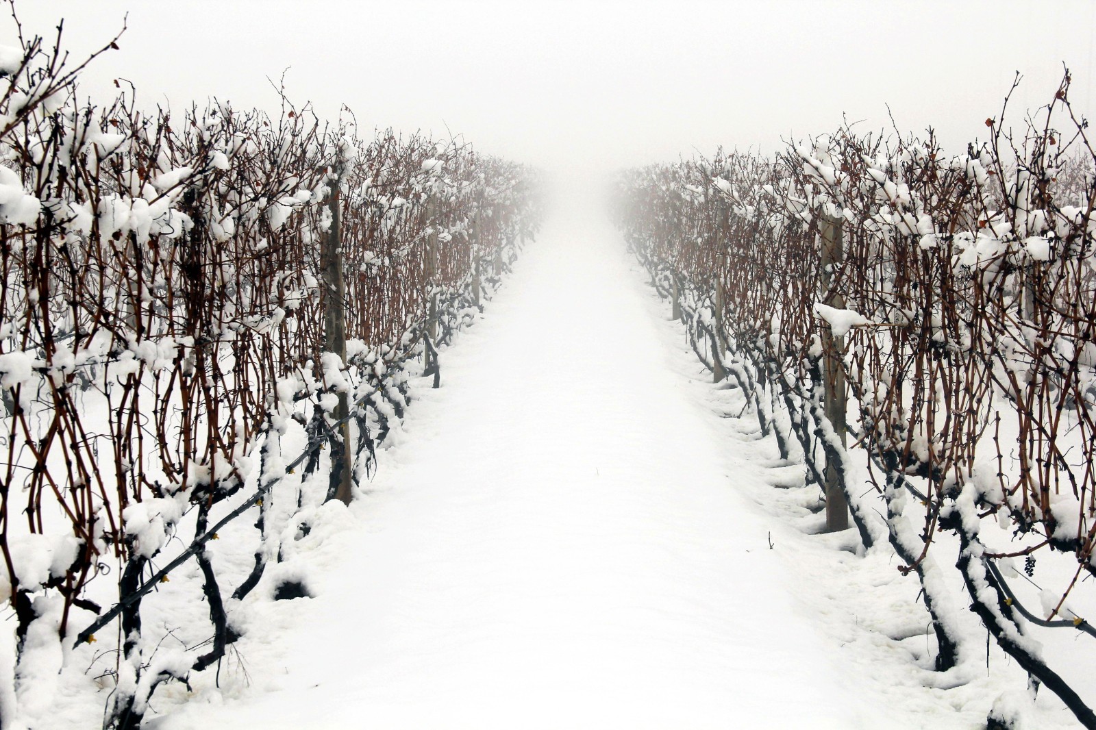 一場大雪給了格瑞特葡萄樹滋養(yǎng),但說到冬雪和葡萄酒的關(guān)系,很多人都不知道,其實冬雪能讓葡萄釀出更美味的酒,對葡萄藤的生長也大有裨益。其一,殺菌除蟲,大雪可以除去一些冬眠的害蟲和有害微生物,這樣葡萄藤就會生長得更為健康;其二,充分補水,下雪和融雪是一個非常緩慢的過程,這有利于土壤緩慢而充分地吸收水分,并且更好地保持土壤的濕潤度;其三,保護葡萄藤,剪枝操作會不可避免地在葡萄藤上留下一些傷口,而這些傷口很有可能被細菌和真菌利用趁虛而入,冬雪的低溫能抑制病害的發(fā)生,而且雪水不僅能沖洗葡萄藤表面,除去微生物,為葡萄藤清洗傷口,還能在傷口表面形成一層保護罩,讓它們免受真菌和細菌的侵?jǐn)_。